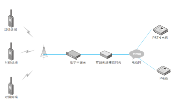 此套石油石化無線通訊系統的電話互聯系統是基於(yú)Hyere數字DMR常規設備(bèi)進行二次開發.最新研制的系統互聯設備(bèi)。其主要應用於(yú)數字/模拟中繼台、車載台、數字調度系統錄音和有線無線接駁。中轉台将個呼和組呼聯系人注冊到有線無線接駁設備(bèi),再通過有線無線接駁設備(bèi)(IPPBX)與其他電話終端進行互聯互通,最終實現各個數字防爆對講機與電話終端之間的實時通話。