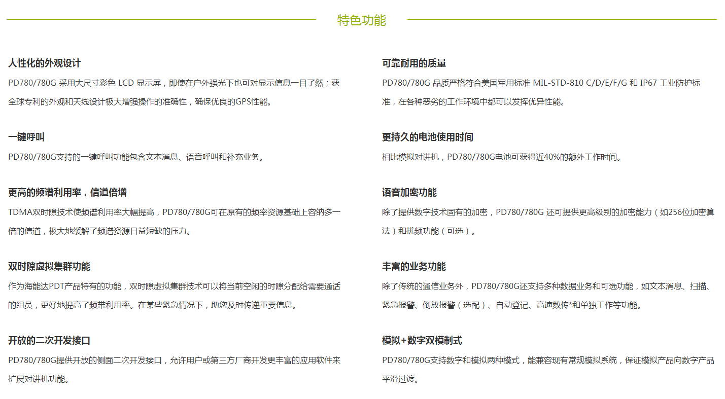 PD780/780G(PD780G爲帶(dài)GPS機型) 是海能達(dá)按照 PDT 标準精心打造的數字常規手持機。強大的數字功能、人性化的外觀設計、卓越的通信品質,帶(dài)給您全新的數字通信體驗,爲應急通訊提供堅實可靠的保障。
