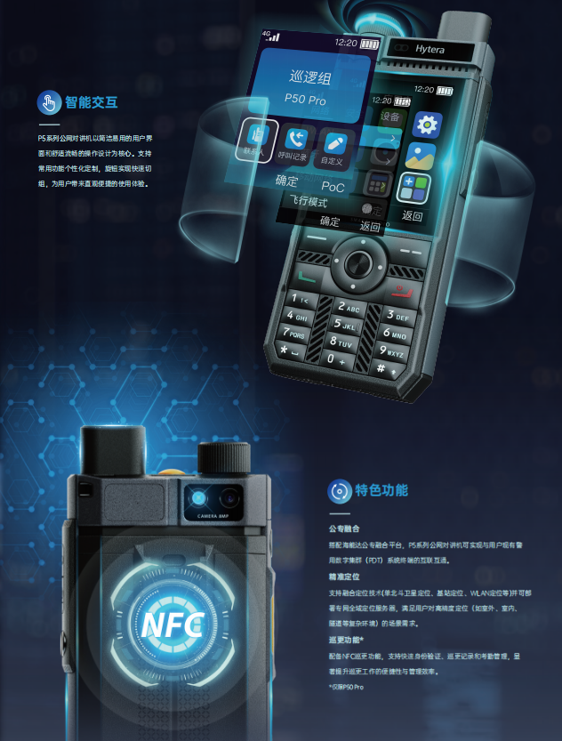 搭配海能達(dá)公專融合平台,P5系列公網對(duì)講機可實現與用戶現有警用數字集群(PDT)系統終端的互聯互通,