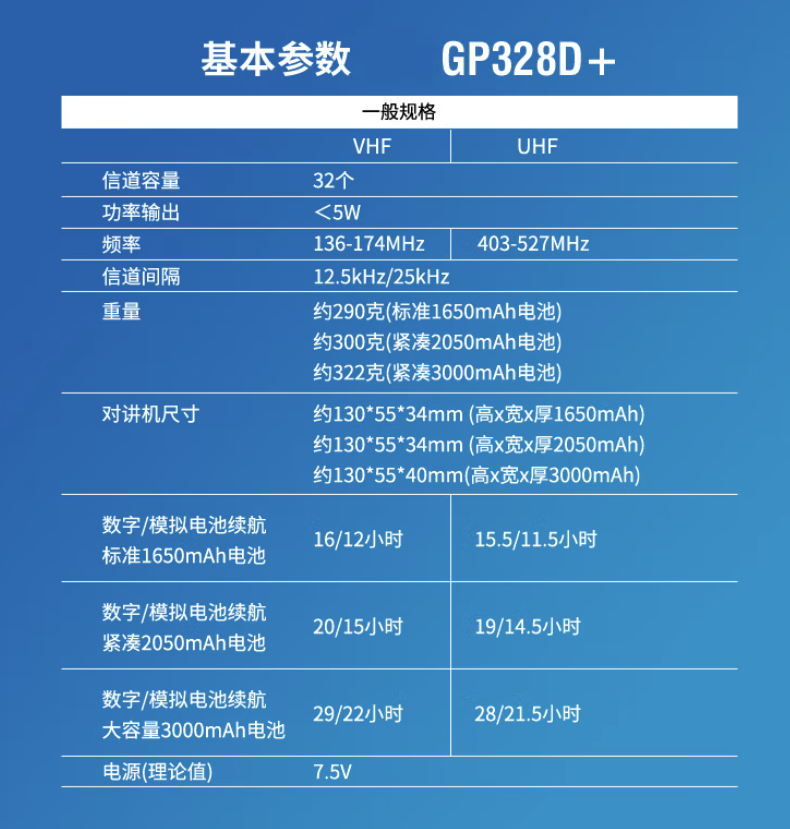 MOTOTRBO採(cǎi)用TDMA數字技術,爲此您可獲得語音和數據集成、兩倍的呼叫容量以及更加清晰的語音通信。GP328D+手持對講機提供衆多企業需要的功能 --包括增強呼叫信令、選項闆可擴展性以及強行中斷發射功能,有助於(yú)用戶處理緊急通信。