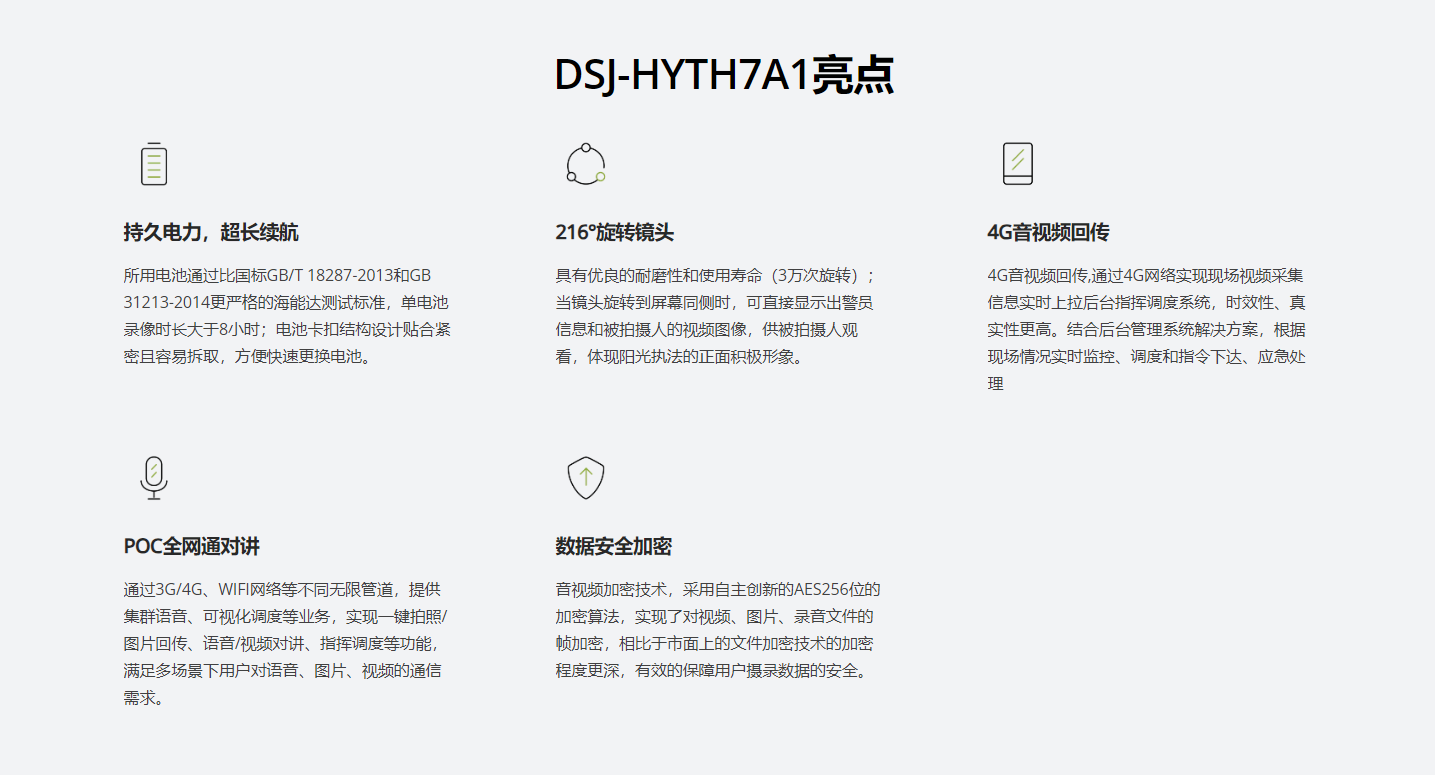 公司首款4G執法記錄儀,採(cǎi)用最新高效視頻編碼及雙碼流技術,低帶寬,高壓縮,實現快速高清視頻回傳同時集公網對講於(yú)一身,其開放性平台,可與多個第三方後台适配兼容使用。